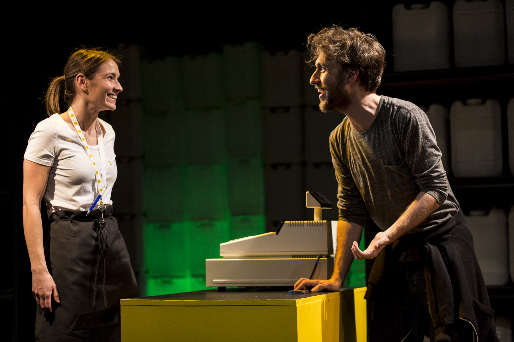 Après Trick or treat et Mes enfants n’ont pas peur du noir, La Bête noire est de retour à Premier Acte avec un tout nouveau spectacle : Épicerie, le deuxième texte de Jean-Denis Beaudoin. On est pressés. Tout le temps. Tout nous presse. Tout le temps. Nous avons toujours quelque chose à faire, à atteindre. Le moment présent n’existe plus. Les lieux n’existent plus, nos maisons, nos centres commerciaux, nos épiceries. Tout tend à disparaître et nous sommes condamnés à vivre dans nos têtes, dans le futur, dans ce qui suit. Tout doit obligatoirement aller toujours plus vite.