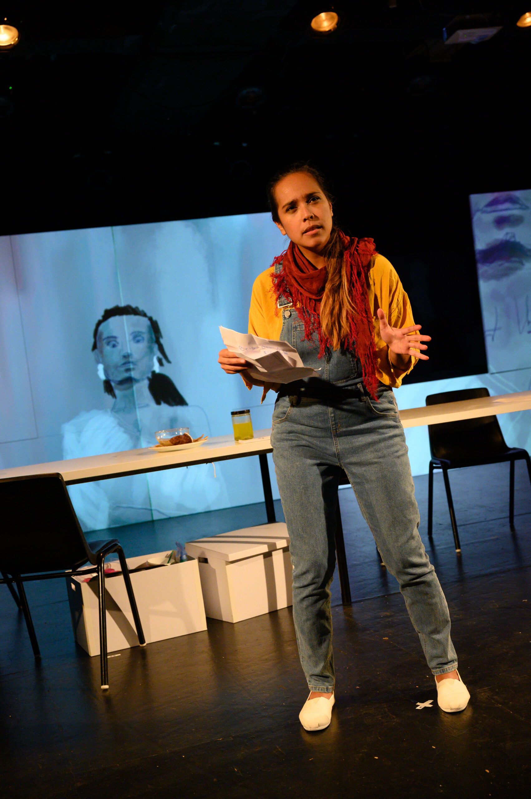 Aux interstices entre le théâtre documentaire, la performance et l’autofiction, .ES – chapitre 1 – soi raconte l’histoire de cinq reines en devenir, de nombreuses assemblées de cuisine, de la quête de nouveaux discours sur les femmes et le pouvoir, d’un show annulé, de discussions politiques sur un banc de neige, de l’envie irrésistible de désobéir.